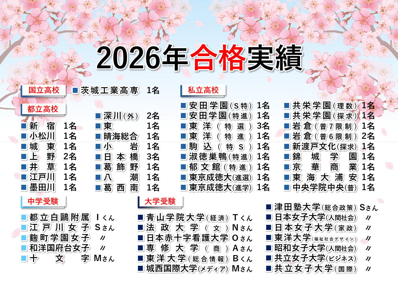 通っている中学校の進度や定期テスト、志望校のレベルに合わせた学習内容を、丁寧に個別で指導しているからこその実績です。